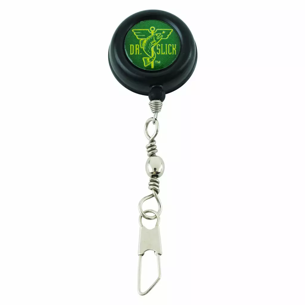 All three of our pin-on reels feature a tough steel cord with a 20-inch draw and a heavy duty pin. Best suited for light accessories like nippers, files, and floatant.