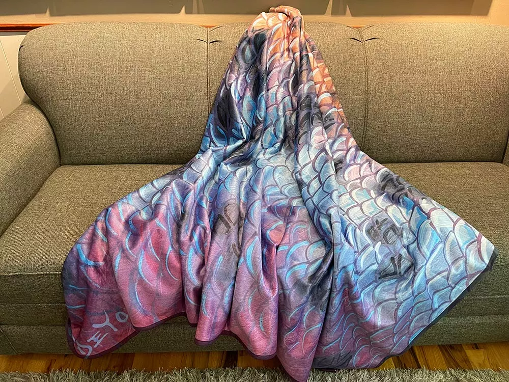 - Beautiful Fully Printed Fleece Blanket (Charcoal Grey Fleece on inside)