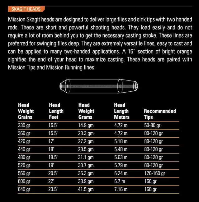 - Skagit heads should be paired with our Mission Running Line and Mission Tips