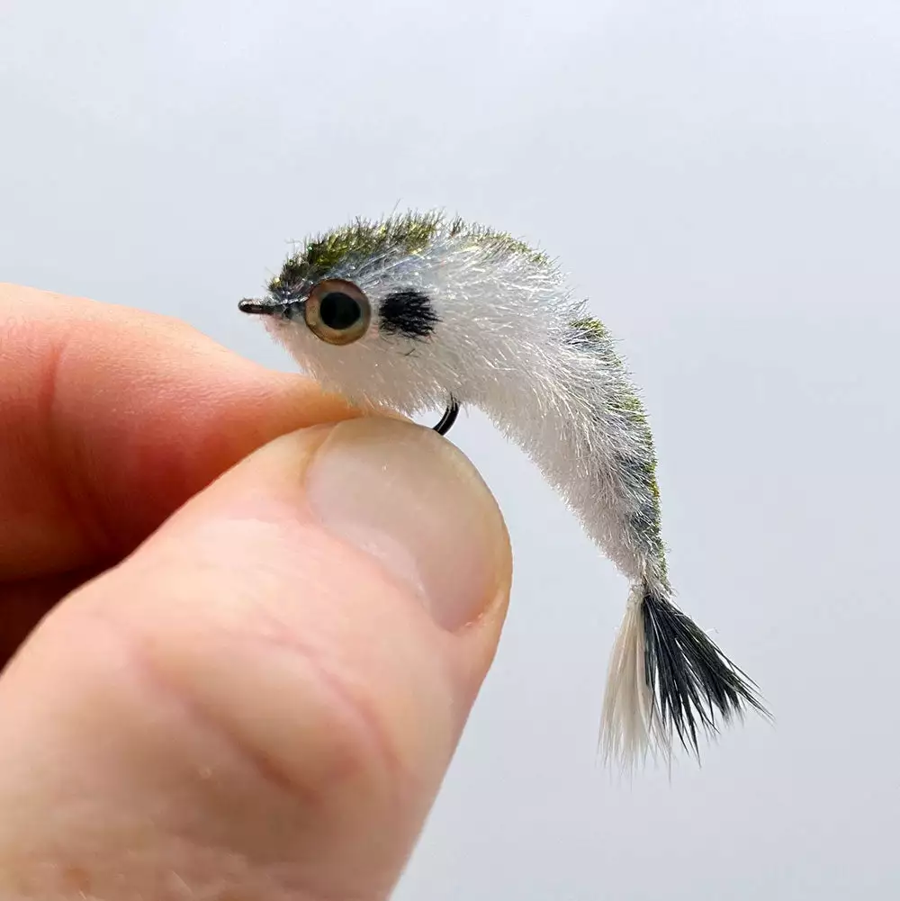 Chocklett’s™ Micro Changer is a small highly articulated baitfish pattern less than 2 inches long, with 7 articulated segments tied with the new Chocklett’s Articulated Micro-Spine.