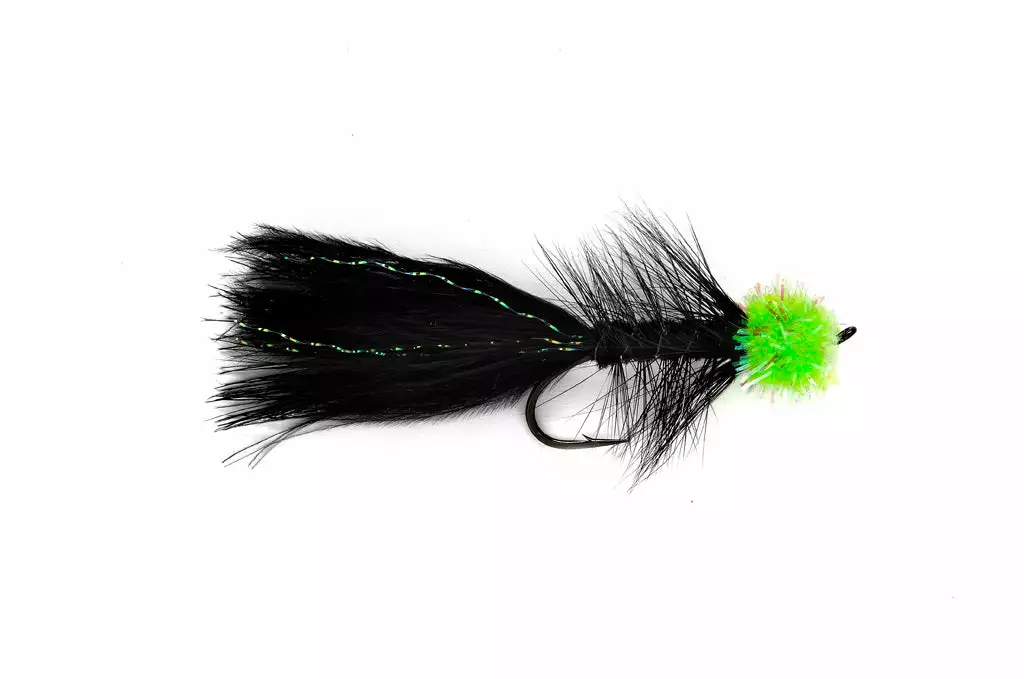 Fulling Mill Flies Mega Egg Leech Black & Chartreuse