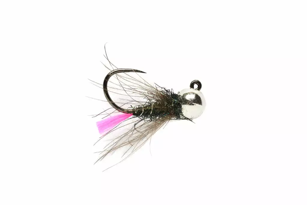 From the box of World Champion Angler, Lubos Roza of the Czech Republic. This Pink-Tag variation offers a dark dubbed body for color variance and sparse CDC hackle for imitative movement underwater. Equipped with a 2.8mm (7/64) slotted tungsten bead.Â