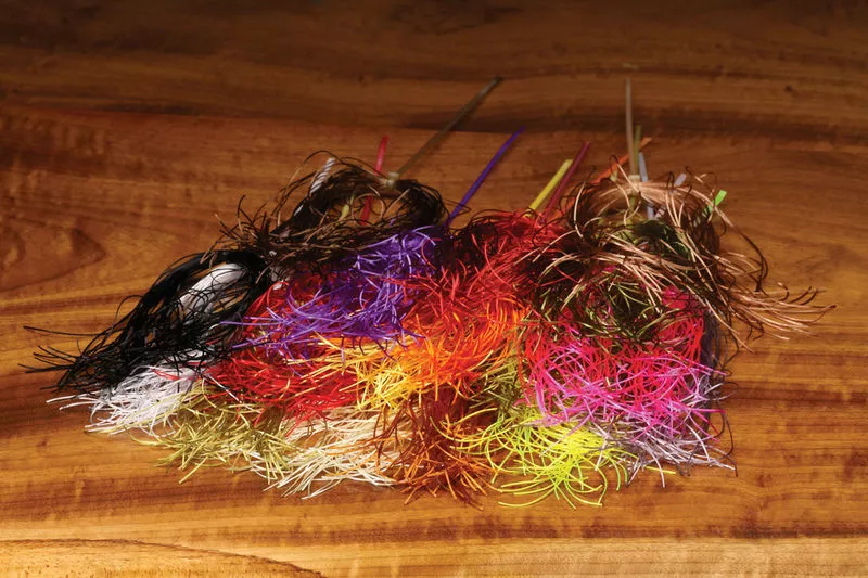 This Spandex material is oval in shape and wiggles like crazy in the water when tied in as legs. Also can be wound like floss for