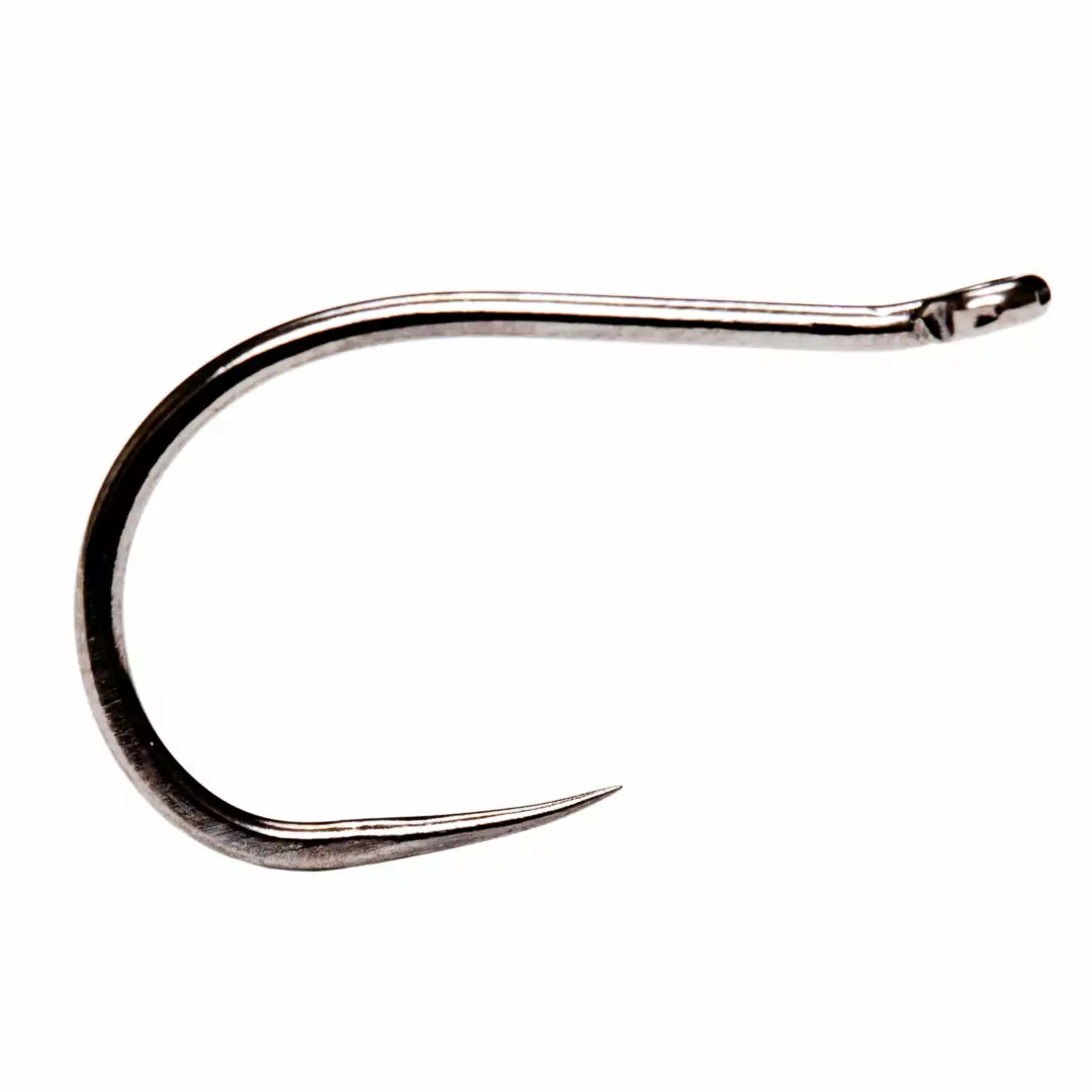 Barbless version of the Stinger hook, forged round bend, standard wire short shank hook with slight offset and up-eye. Ideal for salmon, sea trout and steelhead tubes or as flying stinger on a waddington shank and other long shank patterns.