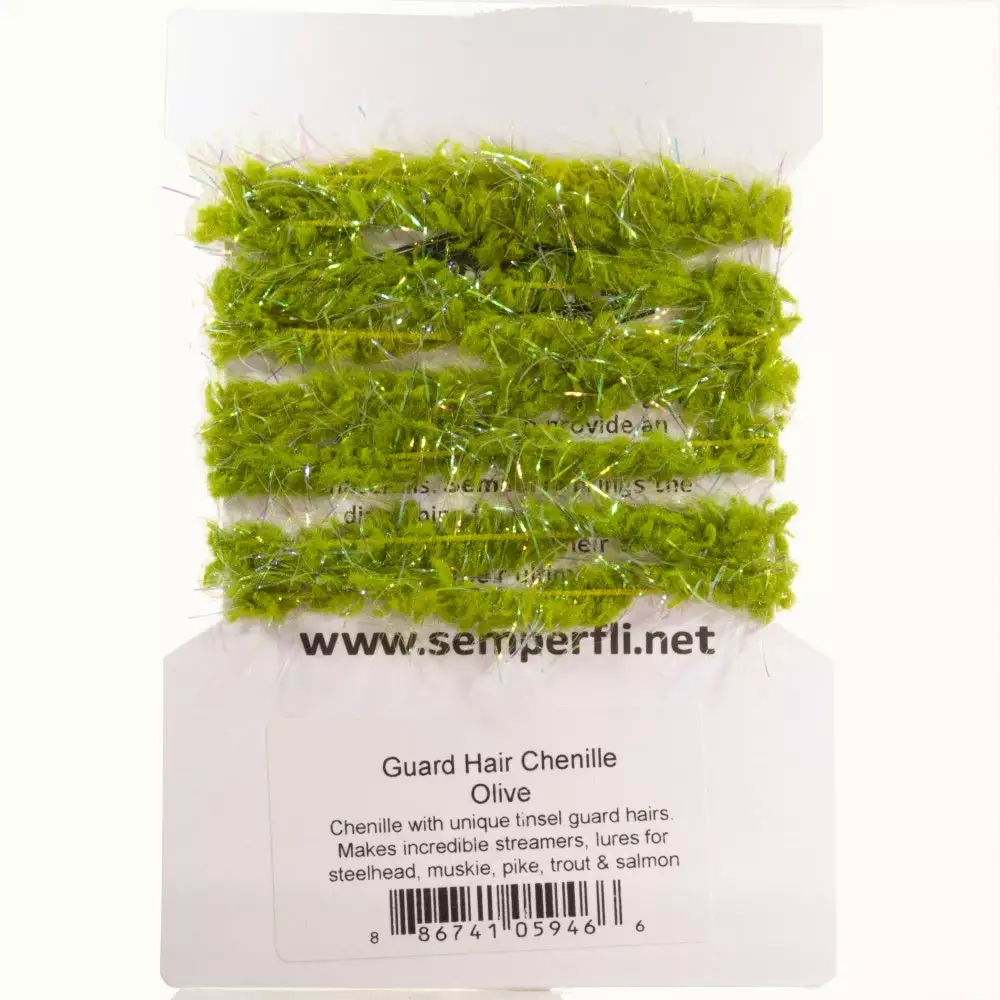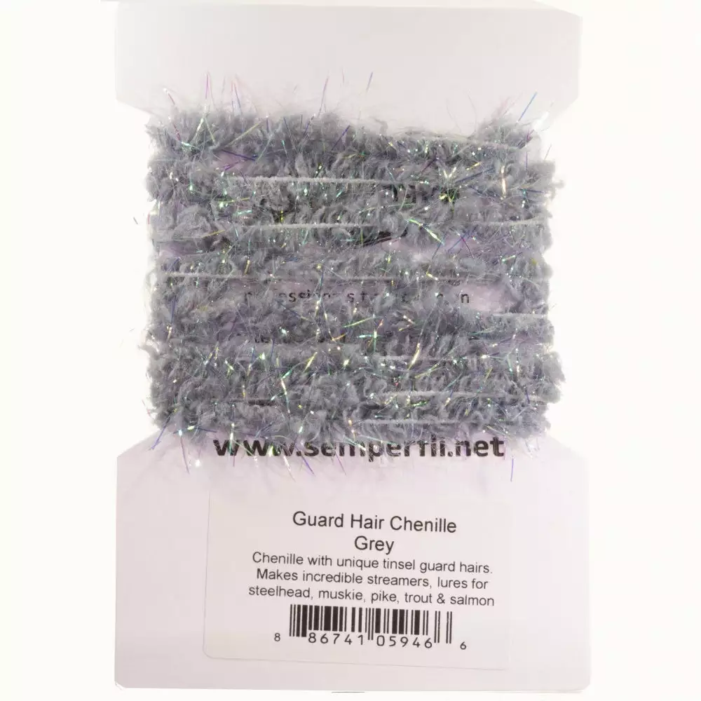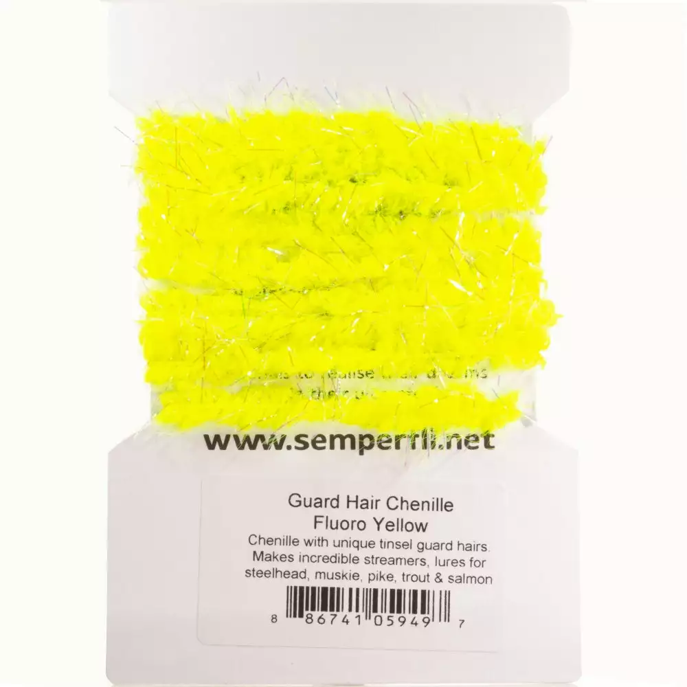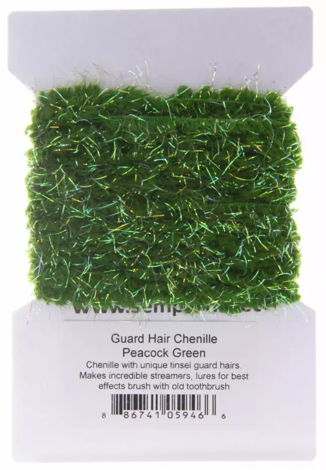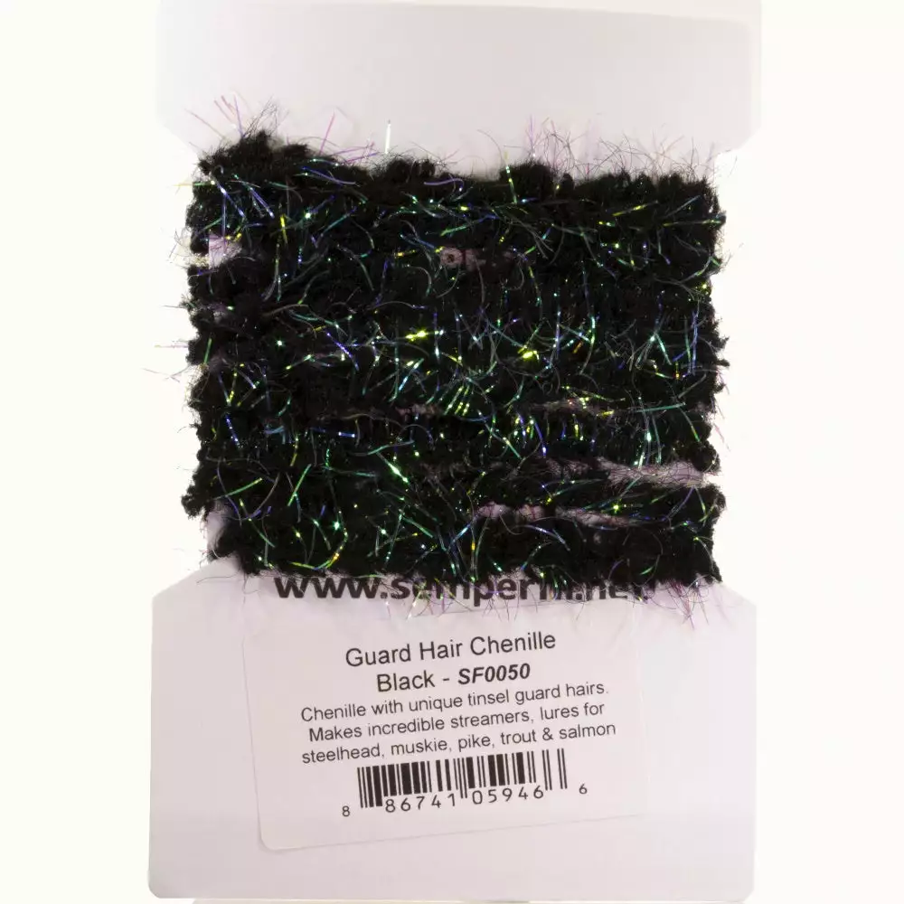 Guard Hair Chenille imitates animal fur with guard hairs for fishing flies. When you look at animal fur we see protruding guard hairs which are loved by fly tyers. These add body and give movement to flies. Guard Hair Chenille was designed to imitate the natural fur of animals using gold tinsel that protrudes above the chenille. Guard Hair Chenille is ideal for streamers, saltwater and predator patterns where the gold guard hairs provide movement and create stunning fly patterns. Try on buggers and humungous for larger mobile bodies.