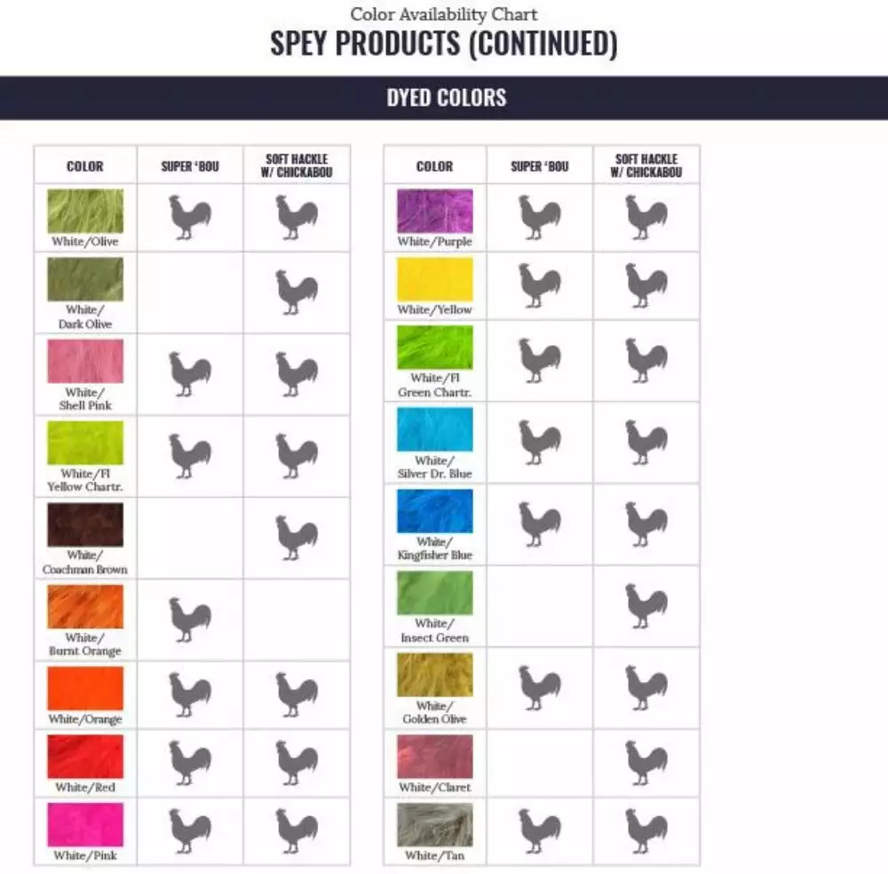 | Title | Black, Grizzly, Grizzly dyed Brown, Grizzly dyed Burnt Orange, Grizzly dyed Coachman Brown, Grizzly dyed Dark Olive, Grizzly dyed Fl. Green Chartreuse, Grizzly dyed Fl. Yellow Chartreuse, Grizzly dyed Golden Olive, Grizzly dyed Heron Gray, Grizzly dyed Kingfisher Blue, Grizzly dyed Olive, Grizzly dyed Orange, Grizzly dyed Pink, Grizzly dyed Purple, Grizzly dyed Red, Grizzly dyed Salmon, Grizzly dyed Shell Pink, Grizzly dyed Silver Dr. Blue, Grizzly dyed Tan, Grizzly dyed Yellow, White, White died coachman brown, White dyed Brown, White dyed Burnt Orange, White dyed Dark Dun, White dyed Dark Olive, White dyed Fl. Chartreuse Green, White dyed Fl. Chartreuse Yellow, White dyed Golden Olive, White dyed Kingfisher Blue, White dyed Olive, White dyed Orange, White dyed Pink, White dyed Purple, White dyed Red, White dyed Salmon, White dyed Shell Pink, White dyed Silv Dr. Blue, White dyed Tan, White dyed Yellow, White dyed Med Ginger |
