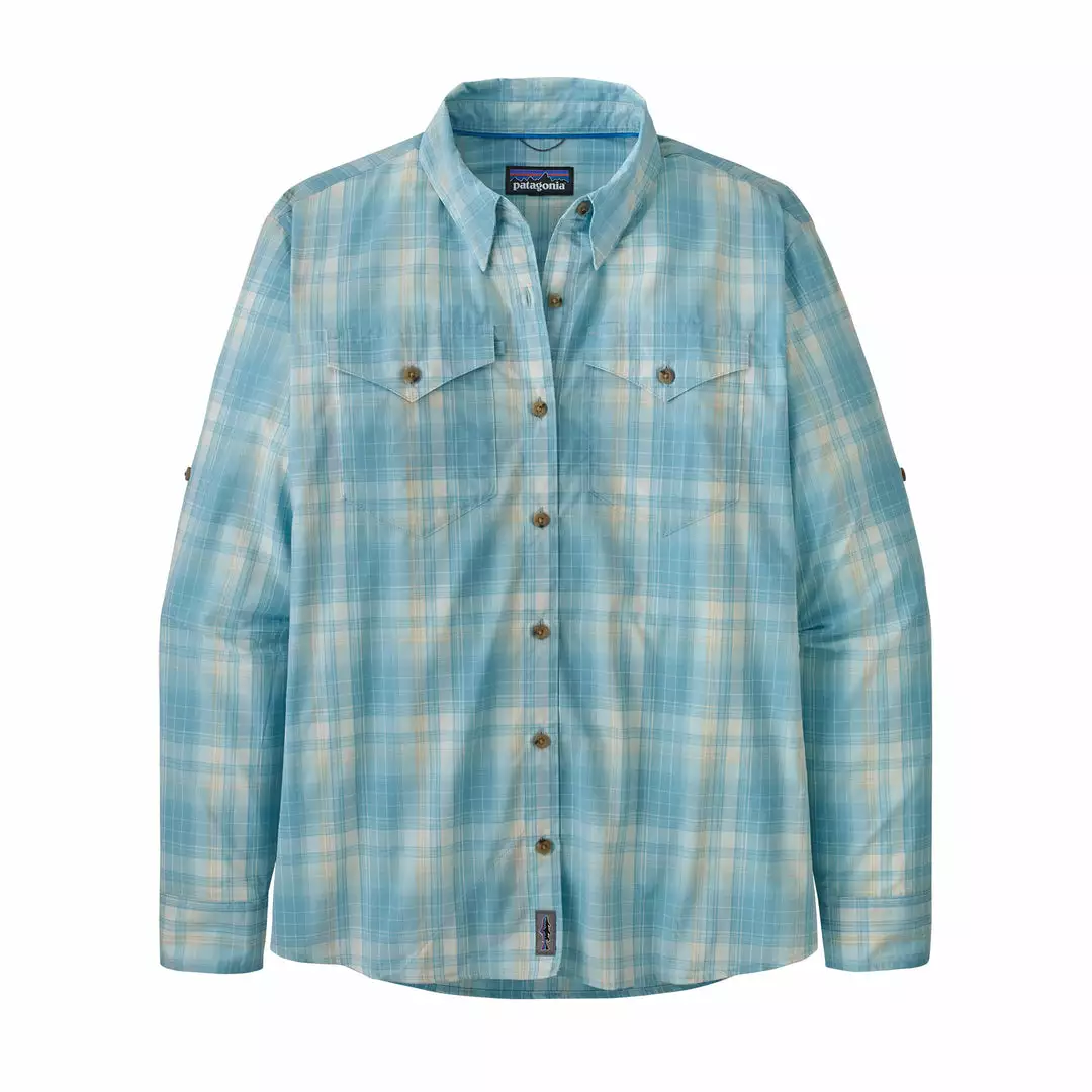 Built for warm weather fishing, Patagonia’s ultralight, fast-drying Long-Sleeved Sun Stretch Shirt is made from a stretchy 2.3-oz 52% nylon/48% polyester blend that offers plenty of freedom to move and breathe. Providing 30-UPF sun protection and full-arm coverage through the heat of the day, its comfortable, relaxed fit works beautifully when worn over a bathing suit or under a warmer layer when evening temperatures drop. Snap-down collar points prevent chin chafe. Two button-closure patch pockets on the chest; a hidden zippered security pocket on the left chest holds small essentials. A convenient front interior sunglass wipe panel keeps your field of vision clear. Curved hem falls to the hips.