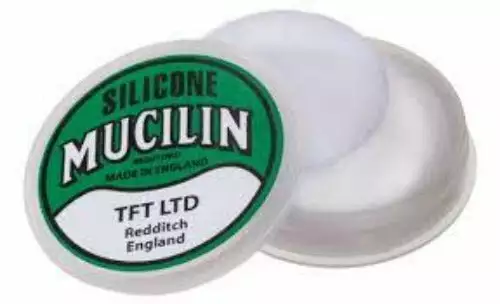 Mucilin, from Thames Fishing Tackle of England, has been the classic choice for fly line, leader, and fly dressing for a long time. This firm paste comes in a resealable plastic “tin” with an applicator pad. Solid Silicone line floatant. Use the Mucilin (with Silicone added) that the English and other fly fishing purists have used for over 30 years. The Thames Fishing Tackle Company of Redditch, England puts their name on every container of this time tested mucilin fly floatant, cleaner and dressing for fly lines.