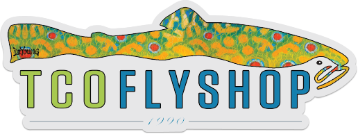 We asked our good buddy, Derek Deyoung to help us add some “coolness” to our logo… and this was the creation. These exterior grade stickers will last years on your car, boat, rod tube or just about anywhere you want to show your support for TCO Fly Shop. Stickers measure 6″ x 2.5″