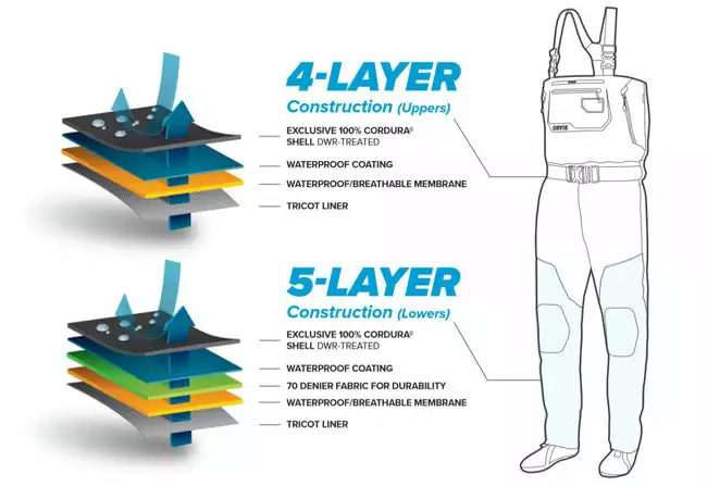 The Orvis PRO Wader is built for the professional angler whether by trade or simply by passion who will go to whatever extreme necessary to find fish. Built with an athletic fit, the PRO Wader uses an extremely durable proprietary 4-layer Cordura® fabric shell in the upper and 5-layer Cordura fabric shell in the lower legs for the best in class abrasion and puncture resistance. Low profile seam construction and a gusseted crotch enhance movement and seam strength. Modern anatomically correct neoprene booties have less bulk with a true “sock” feel and are more comfortable inside wading boots, while the streamlined PU reinforced mesh gravel guard covers the boot tightly and completely eliminates drag and water collection. Convenience features include an external storage pocket with YKK AquaGuard® water-resistant zipper to keep essentials dry and prevents loss. Rubberized tabs on suspenders and front pocket daisy chain for tool docking, offer multiple locations for essentials and eliminate chance of puncturing waders or losing tools. Fly patch on front pocket for quick changes and drying. Large four-way stretch power mesh interior pocket expands to fit larger items yet stays out of the way when empty. Kangaroo-style fleece-lined handwarmer pockets with YKK AquaGuard water-resistant zippers. Removable OrthoLite® knee pads use the same technology found in our PRO Boot insole for optimal comfort and rebound. Removable accessory pocket allows for quick access to gear and offers the features of a small pack. Adjustable elastic suspenders with opposing buckles for waist-high conversion. Interior hook-and-loop patch accommodates our Orvis waterproof pocket (8G3H sold separately). Wader weighs approximately 48 oz. in (medium regular). 100% nylon shell with polyurethane membrane. 100% nylon tricot liner. Imported.