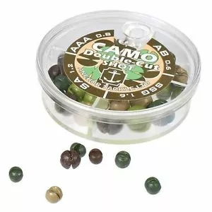 This four compartment assortment contains sizes SSG, SA, AAA, and AB Anchor includes the following colors ; gravel sand, mud brown, weed green, and moss green.Â
