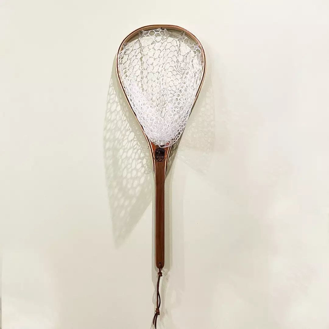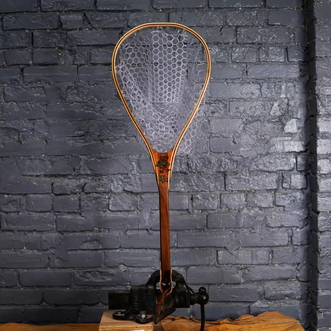 Wayward Woodshop’s flagship Fat Jake landing net is handcrafted by Tina and Justin Skaggs in their Philadelphia-based woodshop. Constructing the Fat Jake with multiple types of wood is essential for a lighter-weight net that won’t drag you down while infusing enough strength to wrangle the fattest and strongest fish. To ensure smaller river trout don’t slip out, they chose a silicone net with smaller holes.