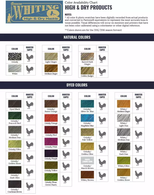 | Title | Barred Dark Ginger, Black, Brown, Golden Badger, Grizzly, Grizzly dyed Burnt Orange, Grizzly dyed Coachman Brown, Grizzly dyed Dark Olive, Grizzly dyed Golden Olive, Grizzly dyed Golden Straw, Grizzly dyed March Brown, Grizzly dyed Medium Dun, Grizzly dyed Olive, Grizzly dyed Orange, Grizzly dyed Pale Yellow, Grizzly dyed Yellow, Grizzly Variant, Light Ginger, Medium Ginger, White, White dyed Brown, White dyed Coachman Brown, White dyed Copper Olive, White dyed Dark Dun, White dyed Golden Brown, White dyed Golden Olive, White dyed Golden Straw, White dyed Light Dun, White dyed Medium Dun, White dyed Medium Ginger, White dyed Olive, Grizzly dyed Brown, Grizzly dyed Peacock Herl |